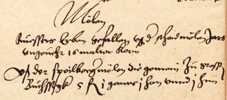 – Rüssers Erben erhalten aus der Scheidemühle jährlich ungefähr 16 Malter Korn.