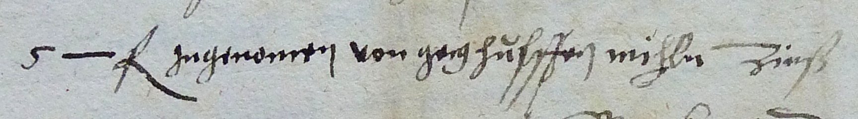 Gesucht wurde nach der Höhe der Geldabgabe – 5 Gulden – da eine frühere, flüchtige Durchsicht keinen Hinweis auf eine Mühle ergeben hatte.